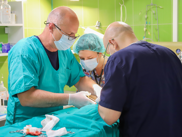 Zbog toga, „Vet Centar“ je oduvek i ovom segmentu veterinarske medicine poklanjao potpunu pažnju, tako da smo u mogućnosti da odgovorimo hirurškim izazovima koji se pred nas postavljaju. U tom smislu neprekidno smo usavršavali naše znanje i veštine, ali i nabavljali opremu neophodnu da bi se kvalitet i bezbednost hirurških procedura podigao na najviši nivo. Naglasićemo izdvojenu hiruršku salu, aparat za inhalacionu anesteziju sa savremenim monitoringom i postoperativnu hospitalizaciju.